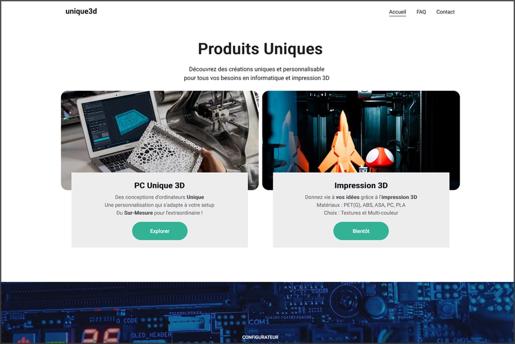 Site de conception unique en 3D